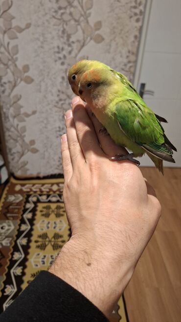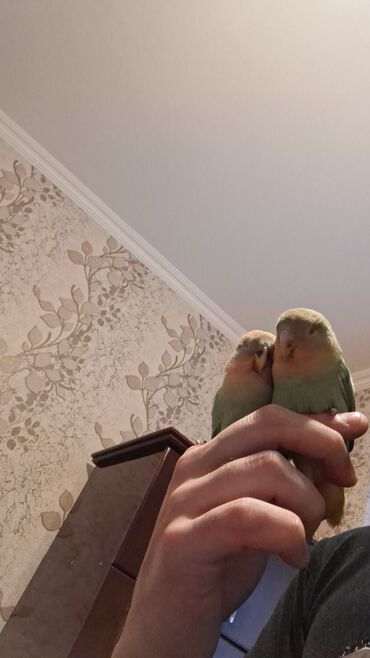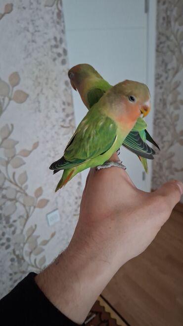Sevimli “lovebird”/agapornis tutuquşuları satışda. Xüsusiyyətlər: - Növ: Agapornis (lovebird) - Rəng: yaşıl bədən, çəhrayı-qızılı yanaq və sinə, tünd quyruq; bəzilərində mavi quyruq altı - Say: qə...
