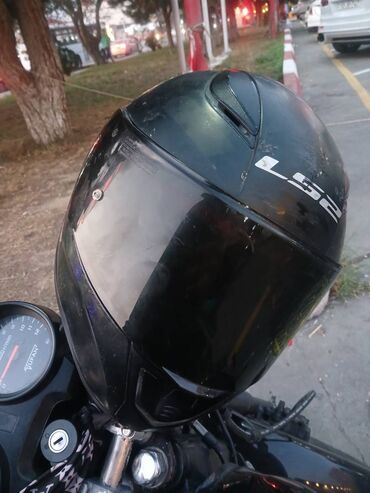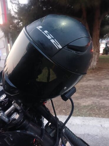 Motosiklet dəbilqəsi – qapalı (full-face) model - Rəng: metalik tünd mavi - Korpus: aerodinamik, parlaq örtüklü sərt qabıq - Vizor: şəffaf, geniş bucaqlı; yan tərəfində sürətli açılıb-bağlanma mex...