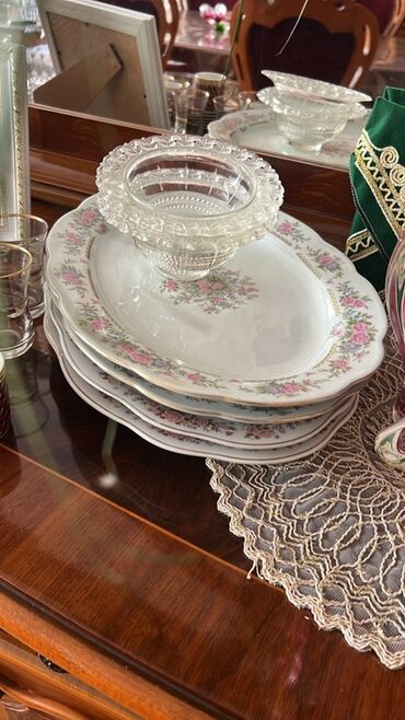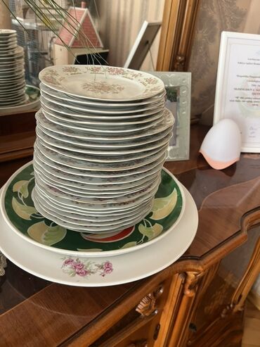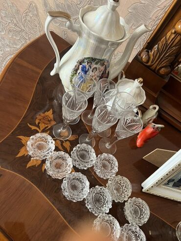 Qab-qacaq dəsti – porselen çay/qəhvə servisi - Material: ağ porselen - Üzərində qızılı və qəhvəyi tonlarda güllü dekor, incə naxış haşiyələri - Dəstə daxil: - Çay/qəhvə çaydanı - Süd qabı - ...