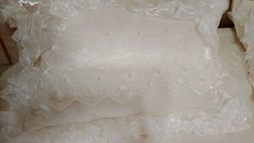 Zərif və gözoxşayan görünüşü ilə otağa salon havası qatır, kənar düşmələri çarpayının yanlarını tam örtür. Dekorativ yastıq üzlüklərində krujeva zolaqları və xırda inci bəzəkləri var.