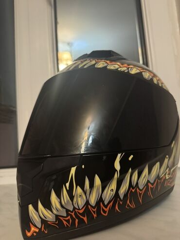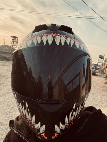 - Rəng/qrafika: Parlaq qara korpus üzərində “diş” motivli aqressiv airbrush stili, alov detalları