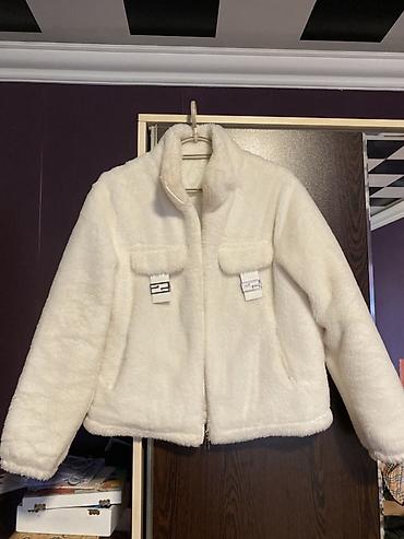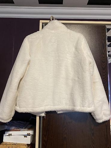 Ağ rəngli, yumşaq “teddy”/şineli fason qadın kurtkası. Ölçü M