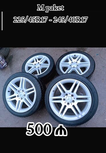 R17 Monoblok Mersedec diskləri çatsız svarkasız ideal vəziyətdə təkərləri yaxşı vəziyyətdə arxa təkərləri ölçüsü 245/40/R17 qabağ təkərlərin ölçüsü 225/45/R17 barter var ünvan Bərdə