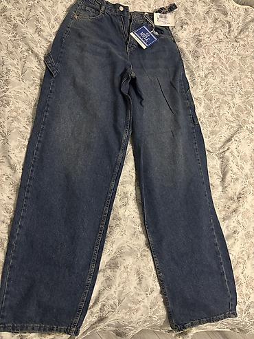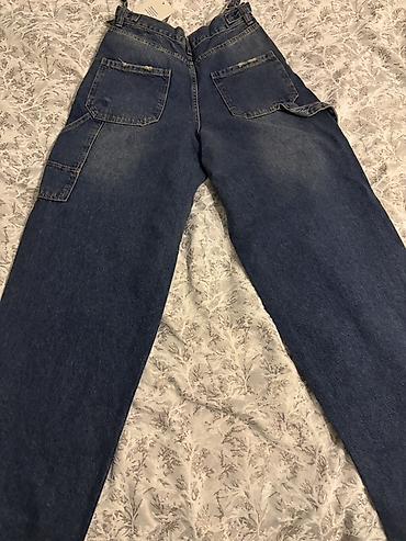 M razmer Uniseks işçi tərzli geniş kəsimli cins şalvar - Rəng: orta