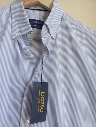 DS DAMAT QIDAQOL kişi köynəyi - Model: DS Casual - Ölçü: L (41–42). S- M ölçüyə uyğun gəlir. - Rəng və naxış: Açıq mavi-ağ eninə zolaqlar Yenidir. etiket üzərindədir.