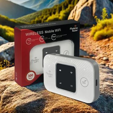 Daşınan Wi‑Fi (MiFi) modem/router Xüsusiyyətlər: - 4G LTE dəstəyi (korpusda 4G/5G qeyd edilib) - Rəngli ekran: siqnal gücü, batareya, Wi‑Fi statusu, trafik istiqaməti, SIM vəziyyəti (“NO SIM”), şə...