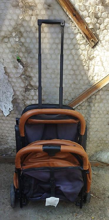 Uşaq arabası – bej/qara rəng kombinasiyası, iri günlüklü və rahat oturacaqlı. Ünvan: Balaxanı qəsəbəsi Xüsusiyyətlər: - Təkərlər: 4 cüt iri təkər, ön təkərlər fırlanan, ön amortizatorlarla daha yu...