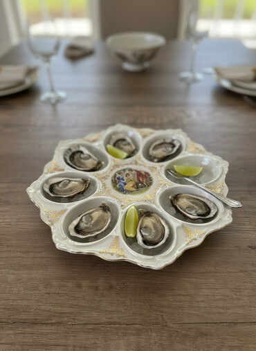 Porcelain dəst – klassik üslubda qapaqlı sos qabı və böyük boşqab. -