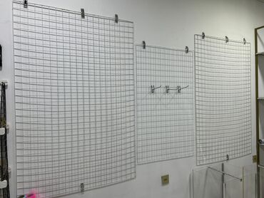 - Divar üçün ağ metal grid panellər: müxtəlif ölçülərdə, asma üçün qarmaqlarla. Aksesuar, paket, xırda malların nümayişi və təşkilinə ideal.