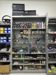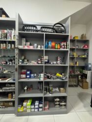 4 ədəd Geniş rəf və vitrin dolabları — yağ, filter, aksesuar və ehtiyat hissələri üçün uyğundur.