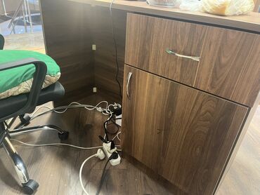 - Kassir/administrator masası: üst panel, çekmece və dolab bölməsi, metal tutacaqlar; kabel keçidi üçün uyğun yerləşim