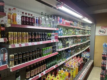 Mağazada şüşə və qutu içkilərin sətirvari düzülüşü üçün ideal, uzun xəttli soyuducu vitrin komplekti.