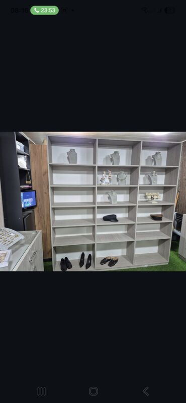 - Ayrı böyük açıq rəf sistemi (9 bölməli), maneken boyunluqları və aksesuar stendləri üçün ideal