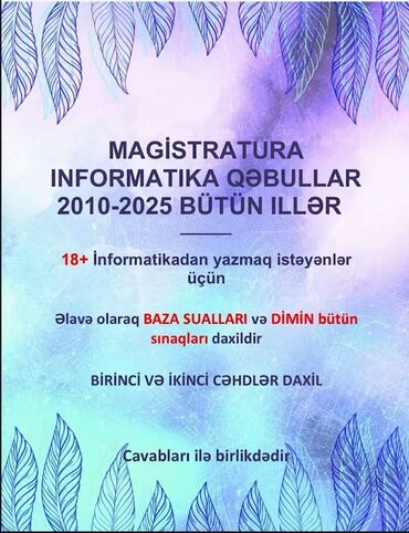 - Magistratura informatika qəbulları: 2010–2025 bütün illərin sual toplusu.
