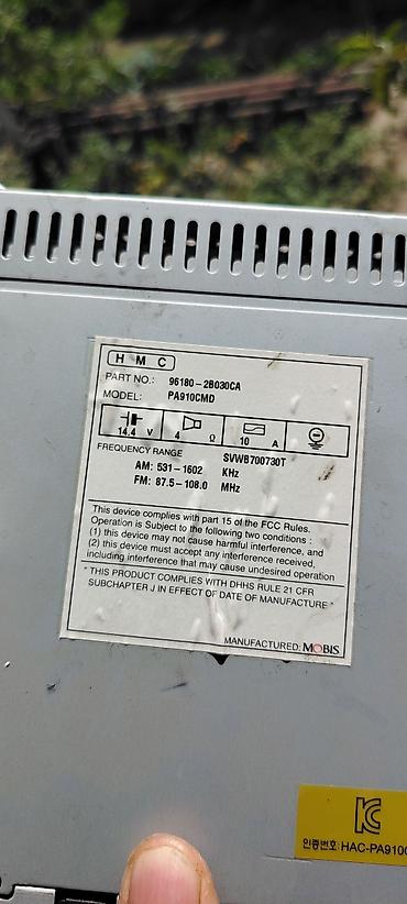 Hyundai orijinal avtomobil maqnitolası (Hyundai MOBIS) Xüsusiyyətlər: - Bluetooth dəstəyi (hands‑free zəng və musiqi ötürülməsi) - FM/AM radio - CD oxuducu, MP3 disk dəstəyi (CD-IN) - AUX girişi (...