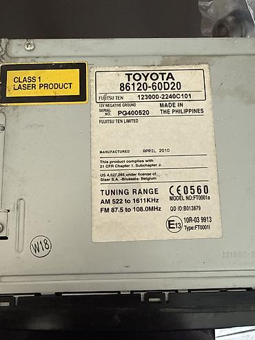 Toyota orijinal avtomobil maqnitofonu/radio başlıq bloku Model məlumatı (etiket üzərində): - Ref. No: 86120-0R100 (seriya etiketində görünən sıra nömrələri və kodlar) - İstehsalçı: Fujitsu Ten - 1...
