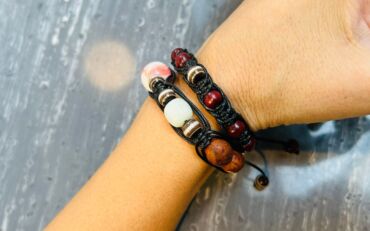- Dizayn: iki ayrı bilərzik – biri geniş, iri daşlı və metal ara hissəli; digəri isə sıx düyünlü, qırmızı muncuqlu klassik şamballa üslubunda.