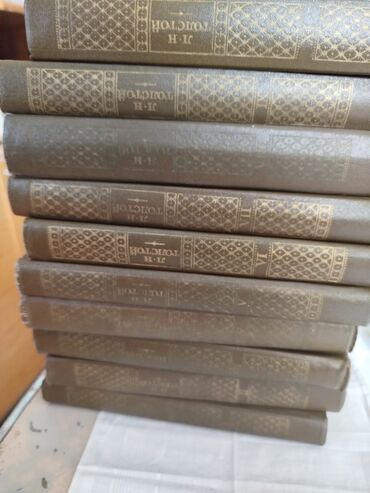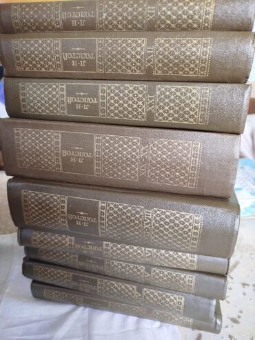 - Qəhvəyi sərt cildlər, qızılı ornament və “И. Н. Толстой” yazısı.