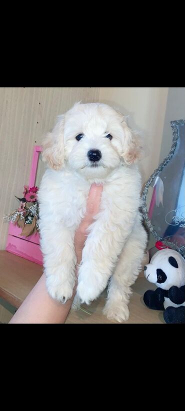 Maltipo 1aylıq it balası,endirim olunacaq - Cins: erkək kiçik ölçülü, uzun tüklü dekorativ tip (ağ-krem rəng çalarları) - Yaş: 1aylıq - Xüsusiyyətlər: mehriban, sakit, qucağı sevən; ev şəraitinə u...