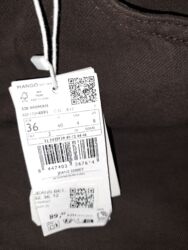 Qeyd (satıcı məlumatına əsasən): Mango şalvar. Yeni alınıb (19 gün), geyinilməyib (razmer səhv alınıb). Razmer 36. 90 manata alınıb, 50 satıram.