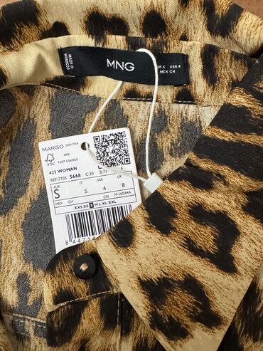 MNG (Mango) qadın donu - Ölçü: EUR S (USA 4, MEX CH) – etiketdə göstərilib - Dizayn: qəhvəyi tonlarda quş lələyi/animal print naxış - Model: V-yaxa, öndən bükmə effekti olan kəsim - Qol: uzunqol -...
