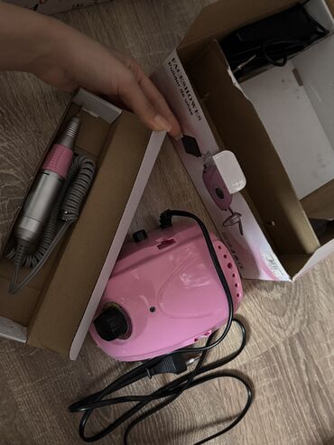 Komplekt şəkillərdə olan hissələrdən ibarətdir: frez aparatının əsas bloku və handpiece-i, ayaq pedalı, lampanın özü və adapteri, qutular. Peşəkar gel lak, polygel və digər UV/LED ilə bərkiyən materialların qurudulması, həmçinin dırnaq formalaşdırma və pilinq işləri üçün uyğundur.