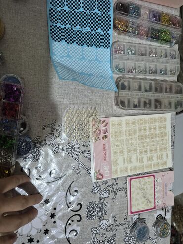 - Müxtəlif brendlərdən gel laklar və örtüklər: CAILI, TNL, E.MI, DIVA və s. (çoxsaylı rəng kodları: 003, 010, 021, 033, 039, 045, 055, 060, 071, 080, 098, 103, 104 və s.)