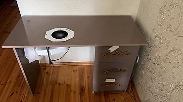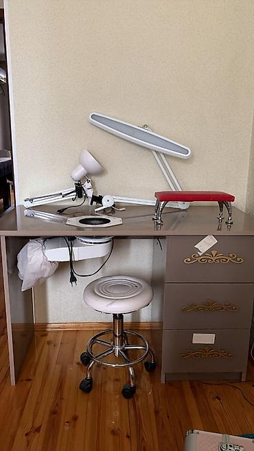 - Manikür stolu: üst səthə quraşdırılmış DustFREE tozudsoran ventilyator, yan tərəfdə çantaya toplanma sistemi, 3 çekmeli şkaf bölməsi, işıq üçün masaüstü dəlik, üstündə qol dayağı.