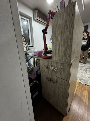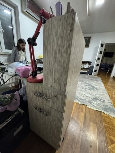 - Yan blok: üstdə açıq rəflər (lak, fırça, aksesuar və s. üçün), alətlərə rahat çıxış