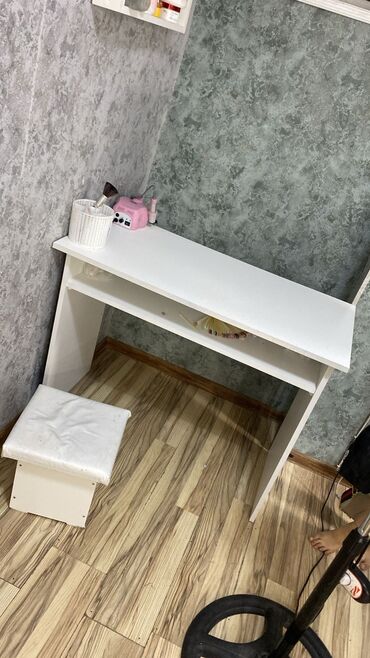 Gözəllik salonu üçün tam təchizatlı manikür-makiyaj iş guşəsi və mebel dəsti Tərkib: - Geniş iş masası: ağ rəng, 2 çekmeceli bölmə, böyük divar güzgüsü ilə. - Manikür masası: kompakt ölçülü, üst h...