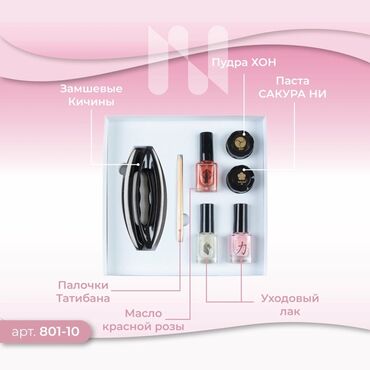 Profesional yapon manikürü üçün komplekt. Dırnaq səthini cilalamaq, möhkəmləndirmək və parlaq, baxımlı görünüş vermək üçün lazım olan bütün vasitələr bir qutuda.