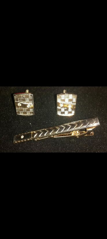 Bu dəstə iki cüt mancet düyməsi və iki ədəd qalstuk sancağı daxildir