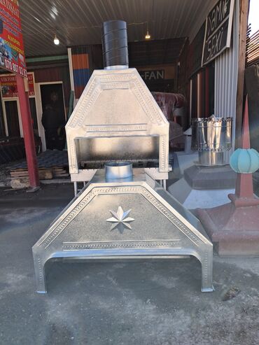 Paslanmayan poladdan peşəkar manqal–soba (şaxta ilə) Məhsul təsviri: - Restoran, dönərxana, kababçı və iaşə obyektləri üçün nəzərdə tutulmuş, tüstü borusu/çəkmə şaxtası olan iri həcmli manqal-soba...