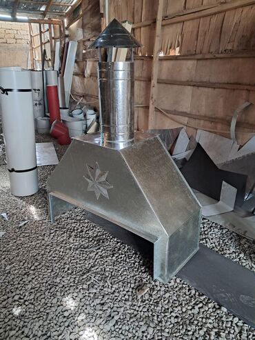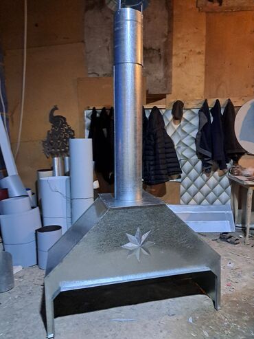 Məhsul: Duman sorucu başlıqlı metal mangal/şamdan tipli soba və havalandırma hissələri Təsvir: - Peşəkar metal konstruksiyadan hazırlanmış mangal-soba komplekti. - Geniş yanma kamerası və üst hiss...