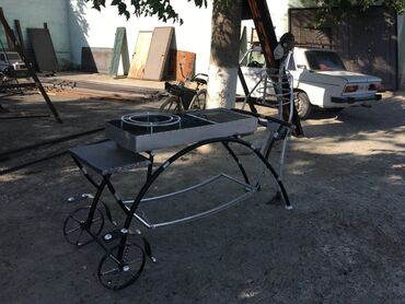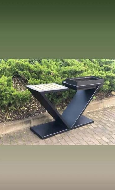 Paslanmayan poladdan hazırlanmış manqal-sobə stendi - Material: tam metal/paslanmayan polad konstruksiya - Üst hissə: düz, geniş iş səthi; çıxarılan qapaq/örtük - Şiş üçün dayaqlar: iki tərəfdə bə...