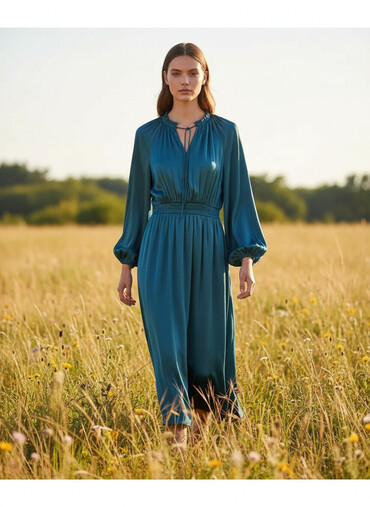Yaşıl rəngli, midi uzunluqda, qısa qollu ziyafət donu. Donun dizaynında yarıq və büzməli qollar nəzərə çarpır. Ziyafətlər və xüsusi günlər üçün uyğundur.