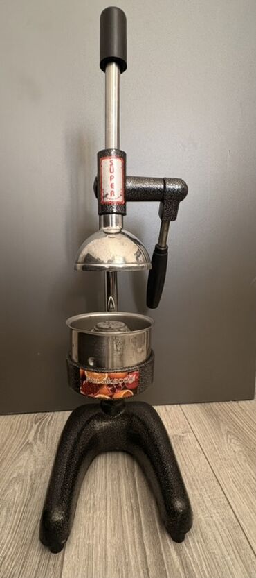 - Üstdən preslə sıxma mexanizmi: meyvə iki hissəyə bölünür, konusa yerləşdirilir, qolu aşağı salmaqla maksimum şirə alınır.