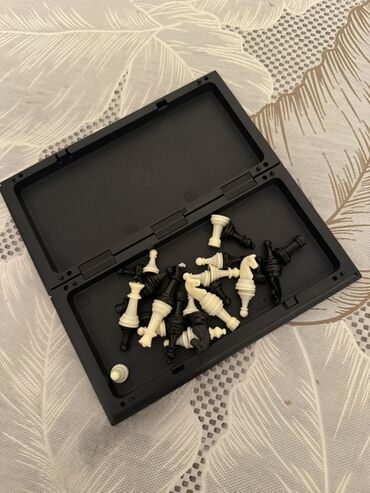 Taxta şahmat/dama dəsti – qatlanan taxta qutu - Material: tam taxta korpus, üstündə dama/şahmat taxtası naxışı - Qapaqlı, metal menteşə və kilid mexanizmi ilə bağlanır - Üst səthdə A–H və 1–8 işar...