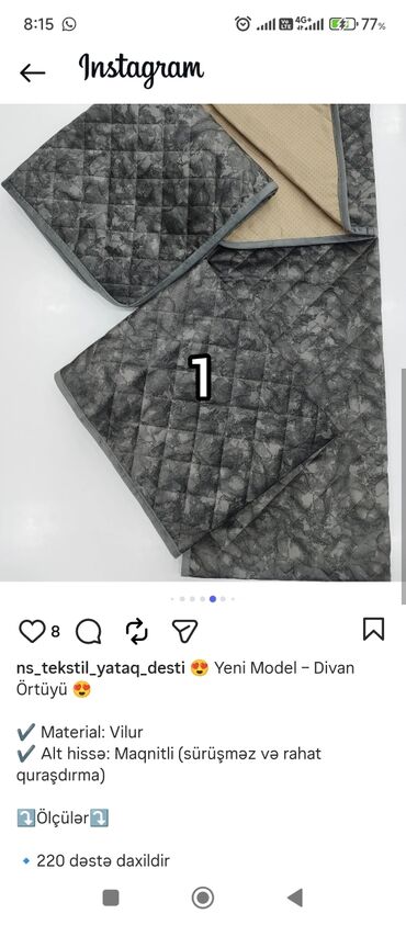 Divanı ləkə və tozdan qoruyan, yumşaq toxunuşlu, interyerə uyğun çoxsaylı rəng alternativləri ilə. Maqnitli altlıq sayəsində örtü yerindən tərpənmir və tez çıxarılıb-taxılır. Rayonllara summa cox olduğu halda çatdirlam pulsuzudu