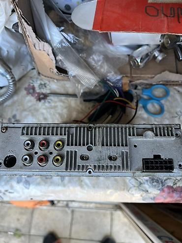 Komplekt: qurğu özü, arxa tərəfdə RCA və ISO qoşulma portları görünür. Monoxrom ekran, rejim dəyişmə (MODE) və səs/seçim üçün dönər idarəetmə. Avtomobildə çoxformatlı musiqi və video izləmək, eləcə də USB vasitəsilə fayl oxumaq imkanı verir.