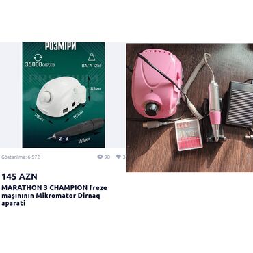 Manikür və dırnaq dizaynı üçün tam peşəkar set Komplektə daxildir: - Manikür/pedikir üçün elektrik frez aparatı (pink gövdə), müxtəlif frez başlıqları - UV/LED lampa - Tozudsoran fan (qutulu) - Ma...