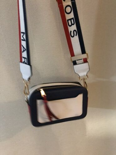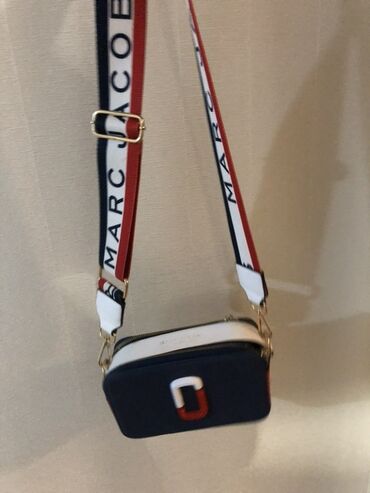 - Geniş, çıxarıla bilən və uzunluğu tənzimlənən toxuma kəmər; kəmərdə “MARC JACOBS” yazısı