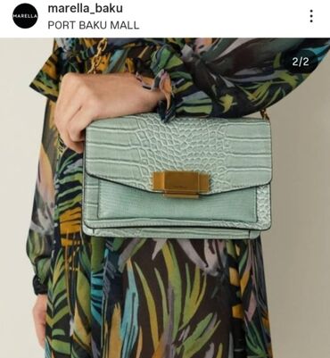 Şıq, yığcam dizayn; çiyin və ya crossbody daşıma üçün zəncir uzunluğu rahatdır. Rəng və faktura kombinasyonu geyimə vurğu qatır. Port Baku Mall mağaza postundan görünən model.