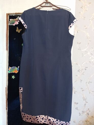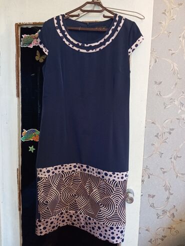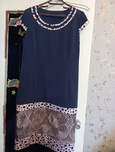 NORM by markalı qadın paltarı - Ölçü: EUR 42 (RUS 48) - Rəng və naxış: tünd göy fonda qırmızı xırda xallı (polka dot) - Model: qolsuz, dizə yaxın uzunluqda - Yaxa: dekorativ banta sahib asimmetrik...