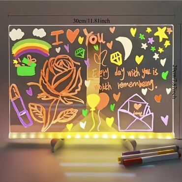 - Rəngli markerlər üçün uyğundur; yazılar və rəsmlər işıq altında neon effekti ilə parlayır