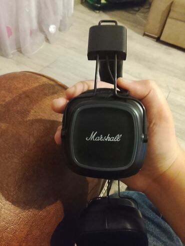 Qeyd: Şəkildəki modeldə Marshall loqosu yan kasada yerləşir, tənzimlənən metal bəndlər və yastıqlı başlıq görünür.