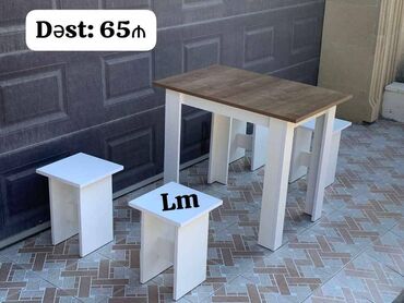 YeniMASA + 4 TABURETKA Yeni və sifarişlə. Çox səmərəli və keyfiyyətli📌 Qiymət: 65₼ Ölçü: 90smx60sm Bir başa istehsaldan satış. Rəng seçimi var. Çatdırılma ödənişli