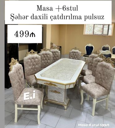 Qonaq otağı üçün, Yeni, Açılmayan, Dördbucaq masa, 6 stul