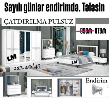 *Yataq dəsti* *Sifarişlə və yeni* Qiymət : *879₼* Dəstə daxildir: Dolab : 2x2.40/47 Termo✔️ *Taxt :1.60×2* +matras 🎁 Tumbalar✔️ Rəng seçimi sərbəst🆘_&LM