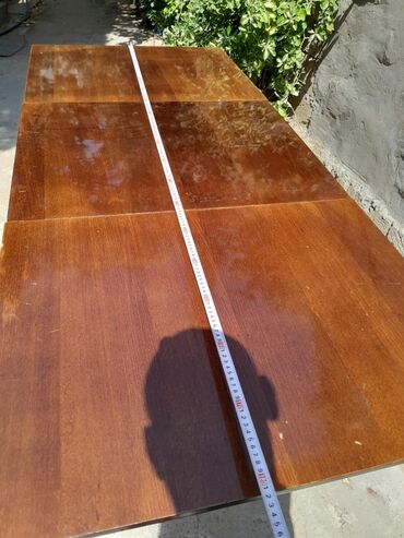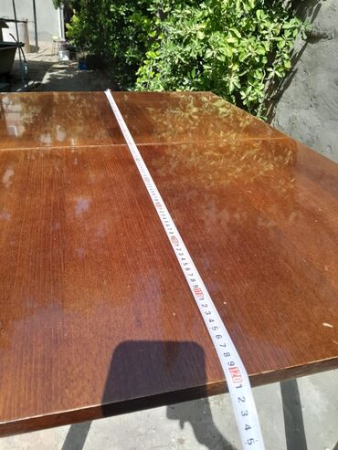 Masa eni 62 sm,uzunlugu 116 sm,yerdən hündürlüyü 80 sm.Masa yaxşı vəziyyətdədir heç bir qırıgı sınıgı laxlamagı yoxdur.Materialı meşə agacındandır tər-təmiz taxtadır üzərində ləkələri var və lak çə...